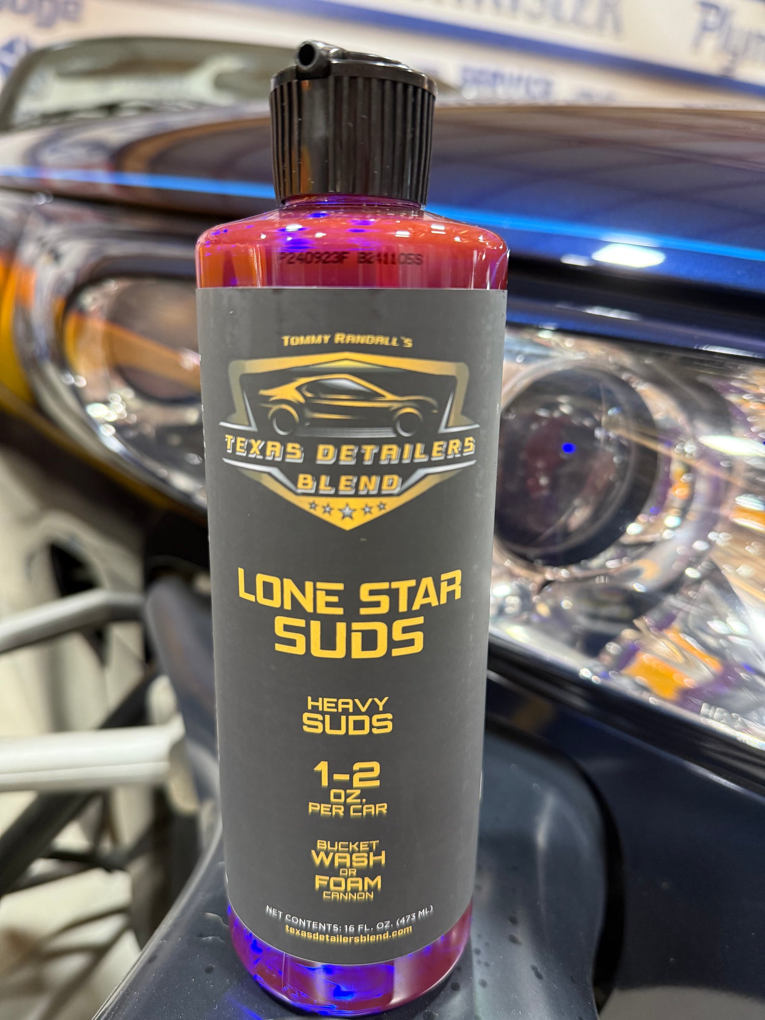 In tribute to our Texas pride and independence, Lone Star Suds is our premium car soap product and is engineered using an emulsified carnauba wax. Lone Star Suds can clean away grease, bugs, oil, & road film from paint, glass & chrome surfaces. Our Wash & Wax will clean and enhance your paint's shine and can be used in BOTH foam cannon or bucket applications. Lone Star Suds will produce a lot of foam, just don't drink it, it's not that "Lone Star", although we do expect it to soon become the national car wash of Texas!