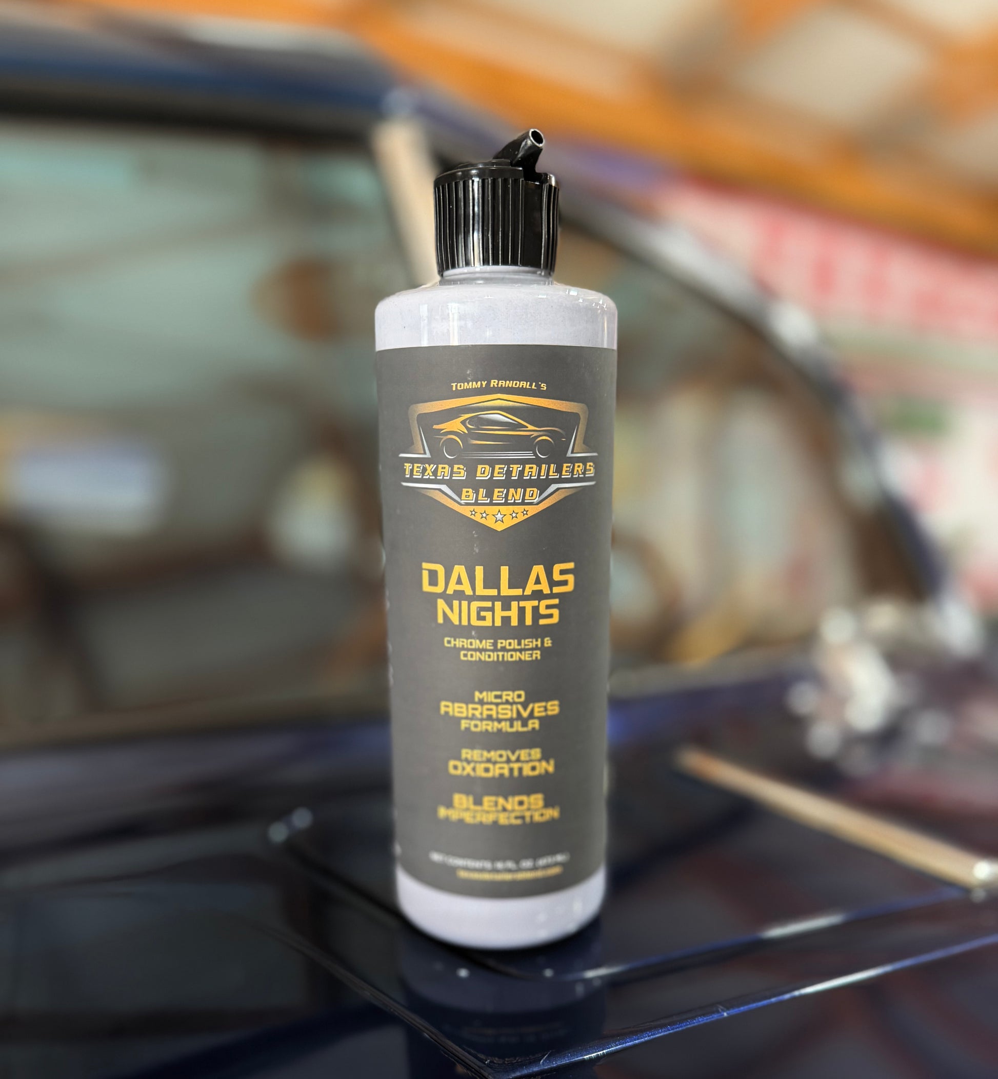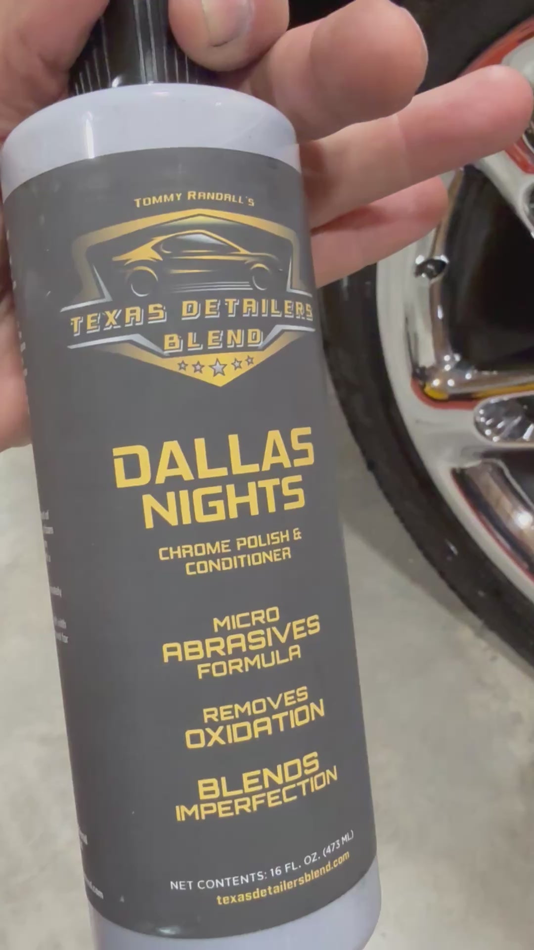 Bright and shiny, just like the Dallas skyline at night. Our Chrome Conditioner and Polish is micro-abrasive wax formula that cleans chrome and leaves a long lasting shine. The micro abrasives not only remove oxidation stains but also blend chrome imperfections. The wax and synthetic fillers protect and condition your chrome and leave a rich bold luster. Excellent for bumpers, trim and chrome wheels. Hot Rod enthusiasts and Bikers have quickly become a fan of Dallas Nights simply because it keeps their chrome parts and pipes shining while also removing stains. It gives you protection against dirt, road grime, pollution, UV light, and other contaminants.